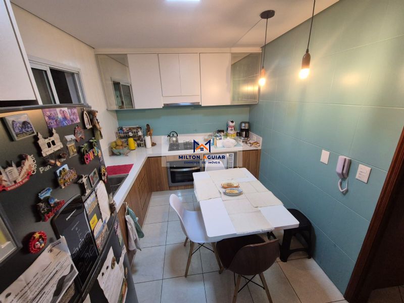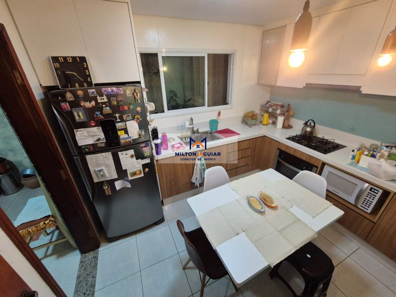 2 banheiros + lavabo, sala de estar, cozinha planejada recém reformada, sala de jantar, área de serviços.